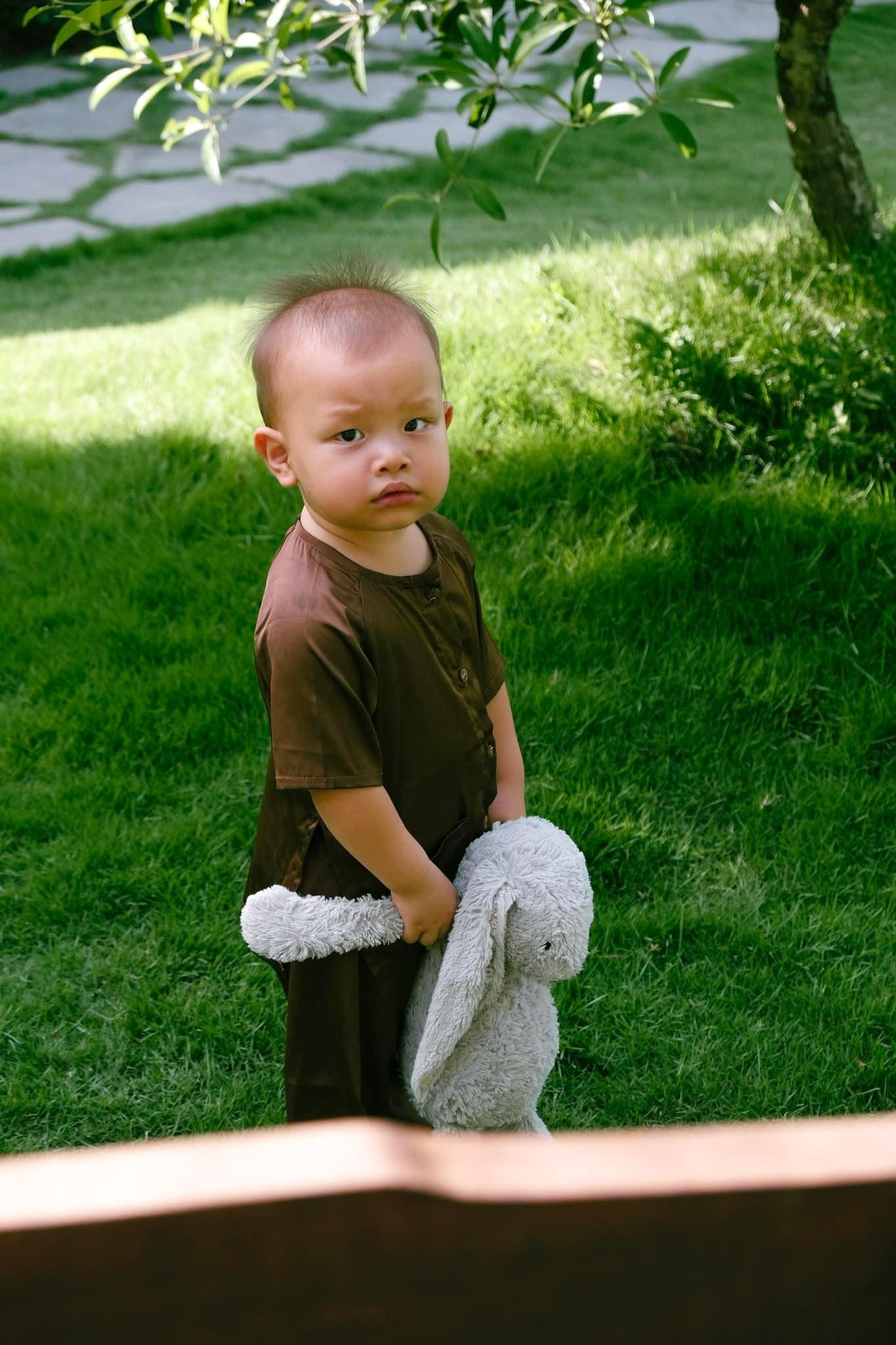 Nhắc đến "mầm non giải trí" nhà sao Việt thì không thể không nhắc đến cậu út nhà Hà Hồ - nhóc tỳ Leon. Năm nay, Leon "đốn tim" người hâm mộ với hình ảnh đón xuân trong bộ quần áo bà ba màu nâu sẫm. Bên cạnh đó, dáng vẻ tinh nghịch cùng biểu cảm vui vẻ "khum" quạu của Leon cũng làm cộng đồng mạng cười "đau bụng".