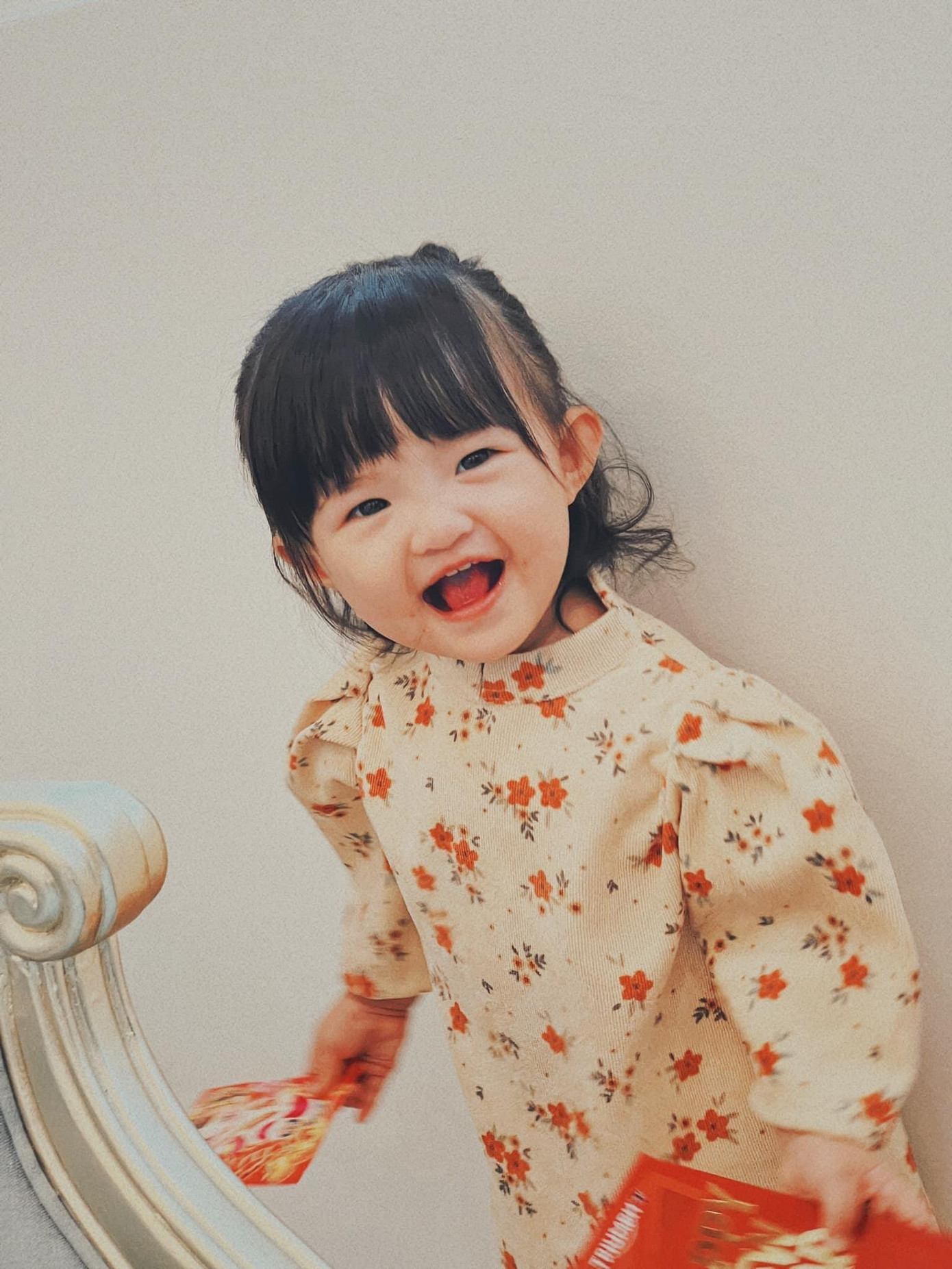 Bé Winnie nhà Nhi Thắng tươi hết cỡ trong dịp đầu năm mới.