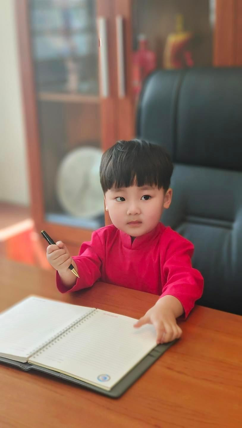 Dù còn nhỏ tuổi, "chủ tịch" Bo nhà Hòa Minzy cũng đã có màn khai bút đầu năm với sự miêu tả của mẹ: "Hi vọng một năm mới kí kết được nhiều hợp đồng làm ăn". Vẻ ngoài ngây thơ, đáng yêu với mái ngố và tà áo dài đỏ, bé Bo khiến cư dân mạng xuýt xoa vì bộ ảnh đón Tết "chất như nước cất" của mình.