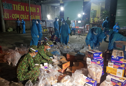 Tại chốt kiểm dịch thành phố Ninh Bình đã chuẩn bị hơn 1.500 suất thức ăn gồm bánh mì, mì tôm, nước ngọt, nước lọc, được đặt ngay cạnh đường quốc lộ, bố trí lực lượng ngay tại chốt kiểm dịch để trao cho công dân.