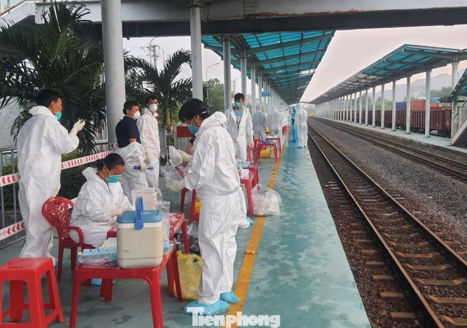 | Lực lượng y tế Ninh Bình trực, lấy mẫu cho 603 người ngay trên tàu - Ảnh: Hoàng Long |