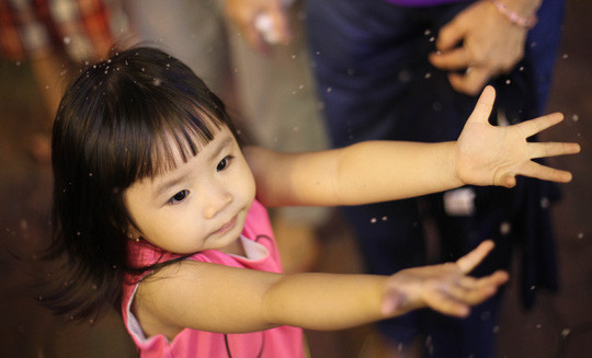 Nhiều người tò mò lẫn hào hứng vì lần đầu tiên được ngắm "tuyết" rơi.