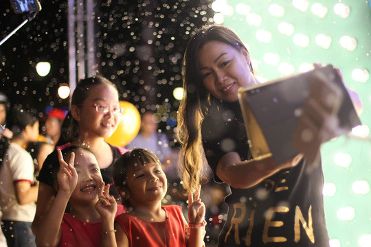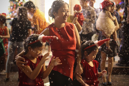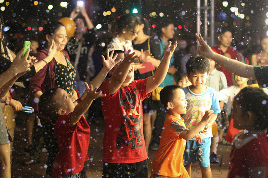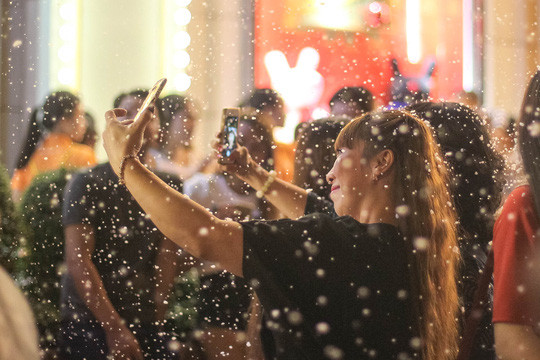 Những "Bông tuyết" này được thổi ra từ một hệ thống máy phun được lắp đặt phía trước Diamond Plaza. Loại tuyết nhân tạo này cũng lãng mạn và đẹp không thua kém gì mùa đông ở nước ngoài.