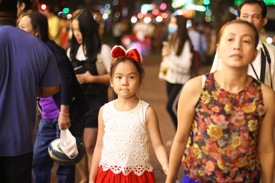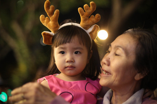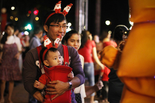 Bé Bo (2 tuổi) cùng mẹ dạo chơi Noel.