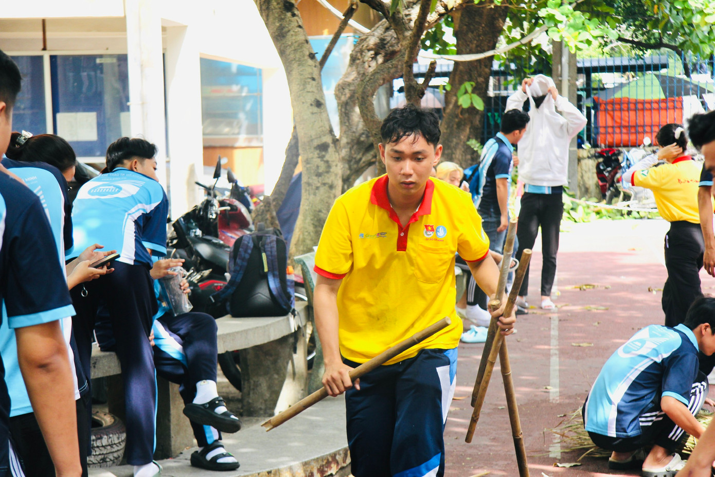 | Nhiều bạn trẻ hào hứng tham gia hoạt động gói bánh chưng, bánh tét truyền thống. |