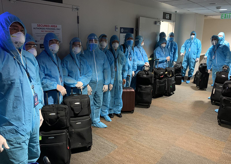 Toàn bộ hành khách, phi hành đoàn chuyến bay đều mặc đồ bảo hộ y tế toàn thân và được đo thân nhiệt trước khi lên tàu. Để hạn chế khả năng lây nhiễm qua vật tiếp xúc nhiều lần, chuyến bay chỉ phục vụ đồ ăn đóng gói sẵn và dụng cụ ăn uống dùng 1 lần.