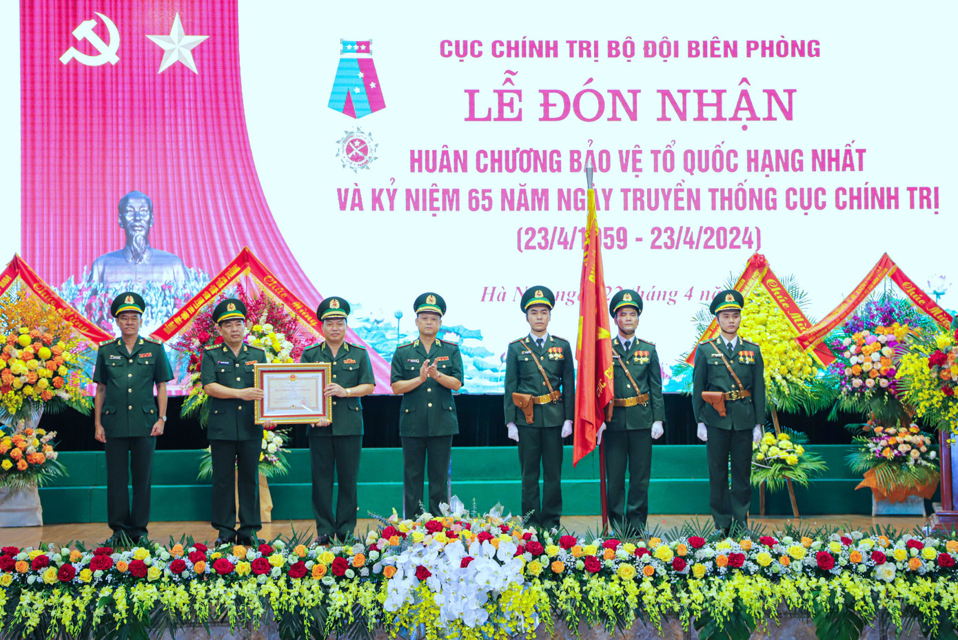 Sáng 22/4, tại Hà Nội, diễn ra Lễ đón nhận Huân chương Bảo vệ Tổ quốc hạng Nhất và kỷ niệm 65 năm Ngày truyền thống Cục Chính trị Bộ đội Biên phòng (23/4/1959 - 23/4/2024).