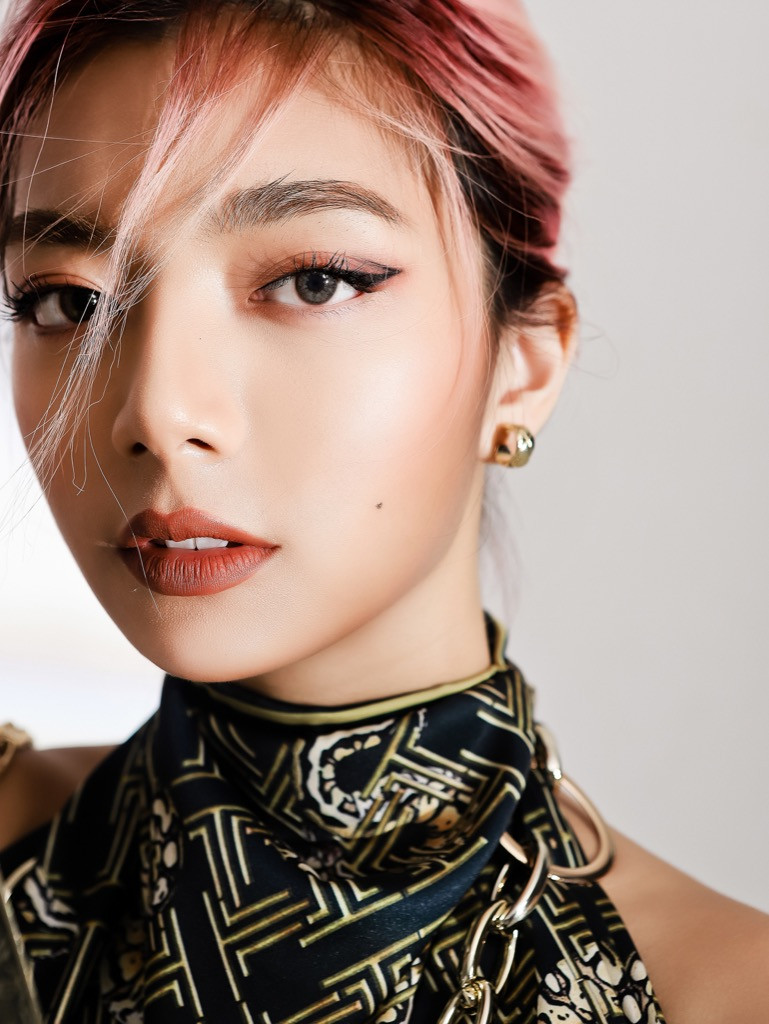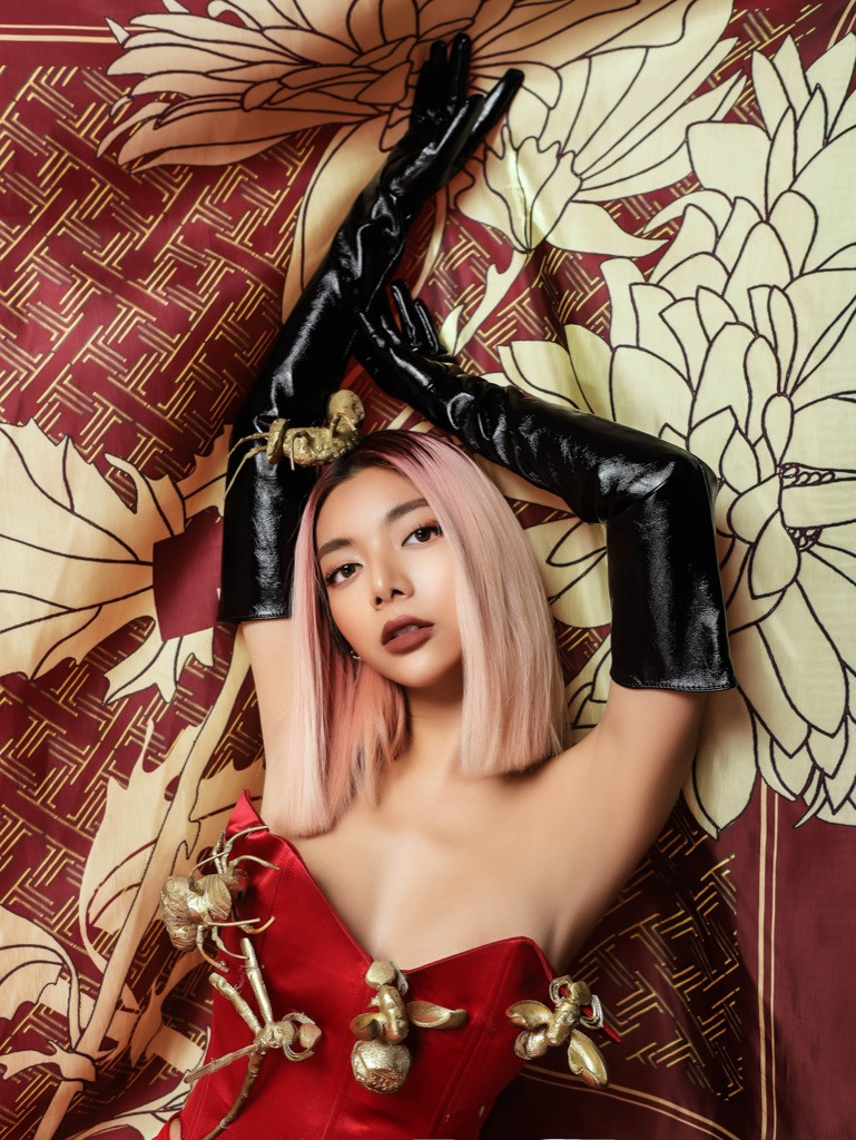 Xuất hiện trong bộ ảnh Tết 2021, mỹ nhân Võ Sinh Đại Chiến không chọn cho mình hình ảnh “yểu điệu thục nữ” trong tà áo dài mà thay vào đó là những bộ cánh thời thượng. Điểm độc đáo mà cô mang đến chính là thanh kiếm - một đạo cụ hiếm được sử dụng cho concept Tết.