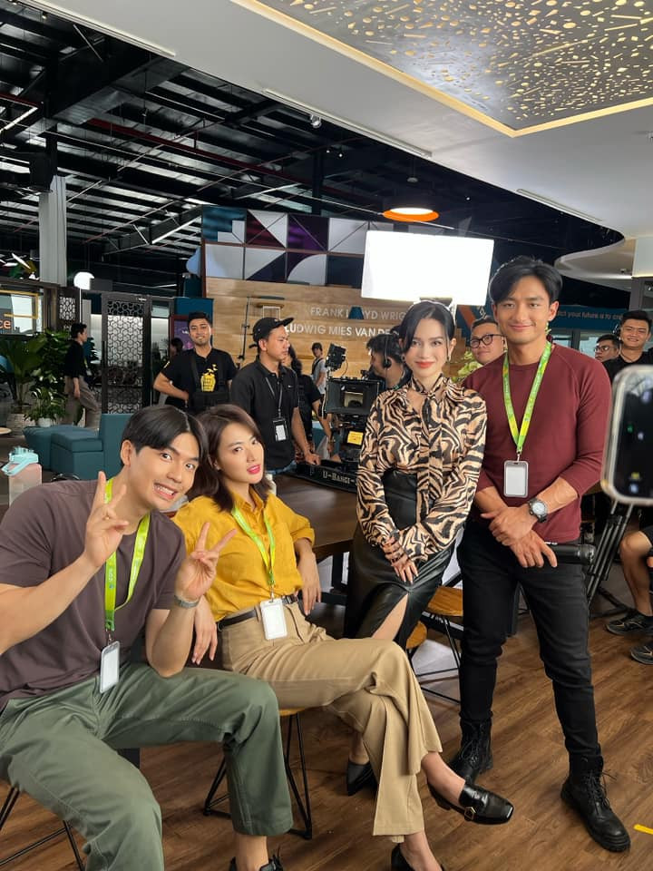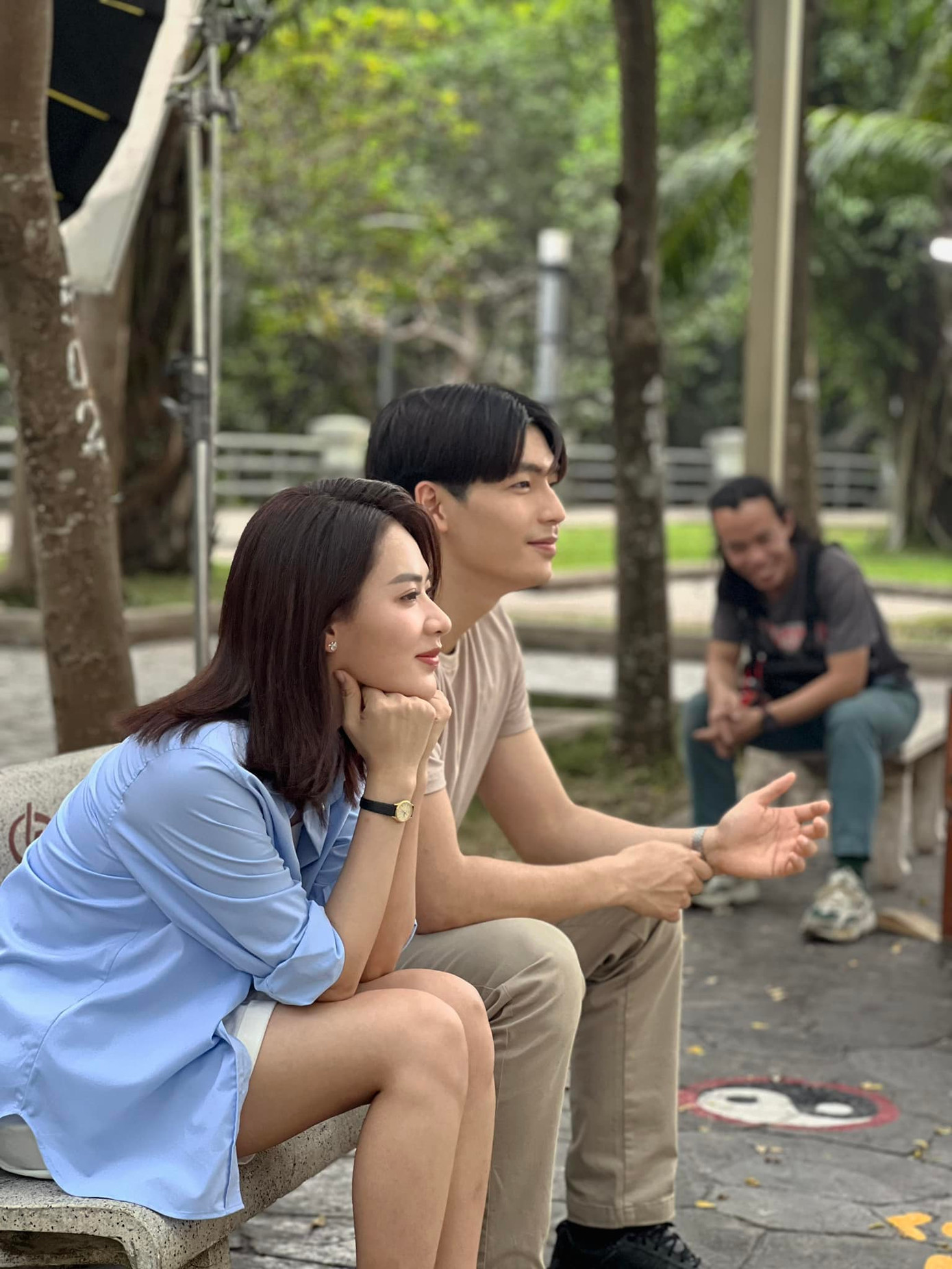 | Quốc Anh luôn tạo được sự chênh lệch chiều cao lý tưởng với bạn diễn nữ. |
