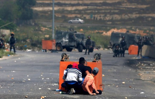 Người biểu tình Palestine đụng độ với lực lượng an ninh Israel trong cuộc biểu tình ủng hộ tù nhân Palestine tuyệt thực trong các nhà tù của Israel ở Beit El, phía bắc Bờ Tây của Ramallah.