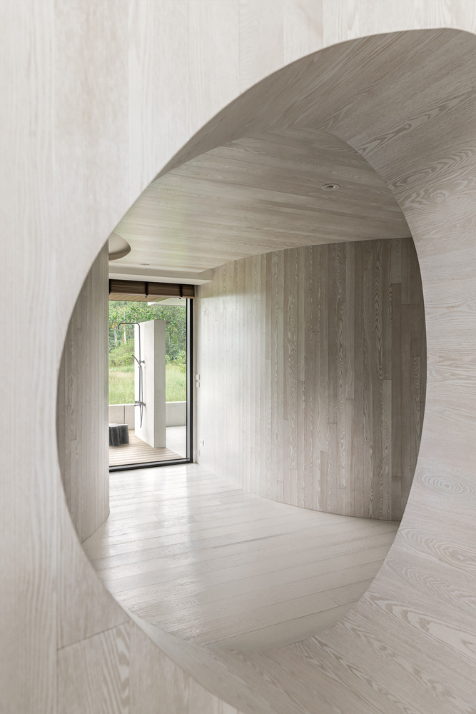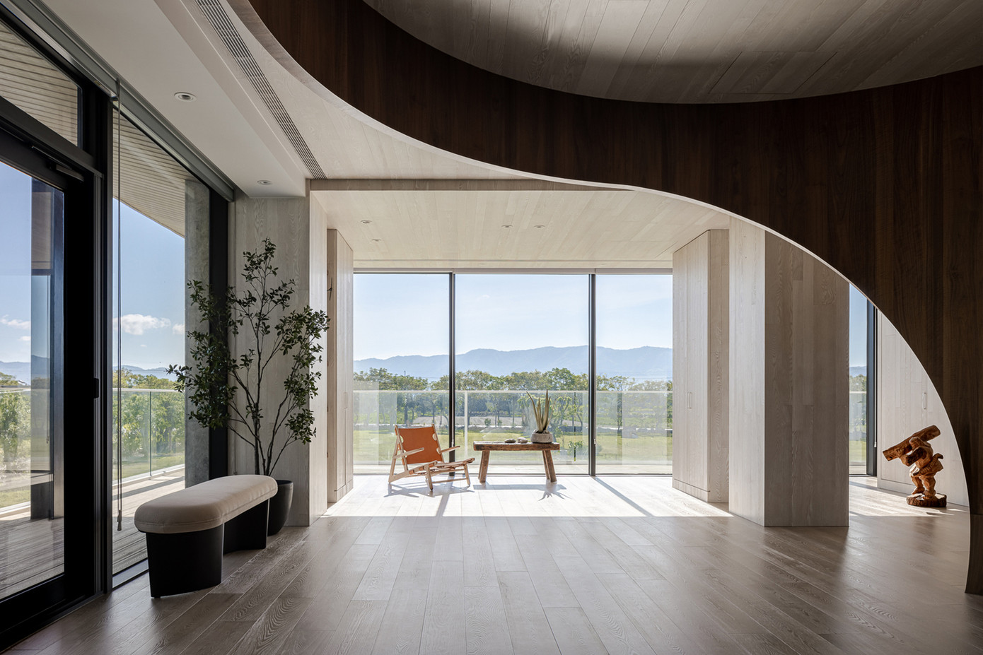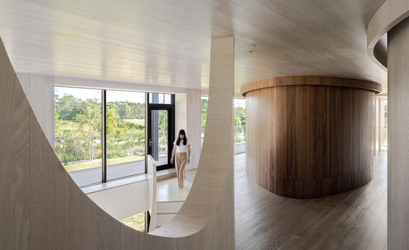 Căn nhà được cải tạo từ một ngôi nhà cổ truyền thống ở Hoa Liên, Đài Loan, với nguồn cảm hứng từ những đường cong của núi non và biển cả tại địa phương. Không chỉ giúp khéo léo che đi các góc cạnh vốn có của phần khung kết cấu, chi tiết đường cong còn tạo nên những mảng miếng, khối dáng ăn ý nhịp nhàng và là điểm nhấn thú vị trong không gian.