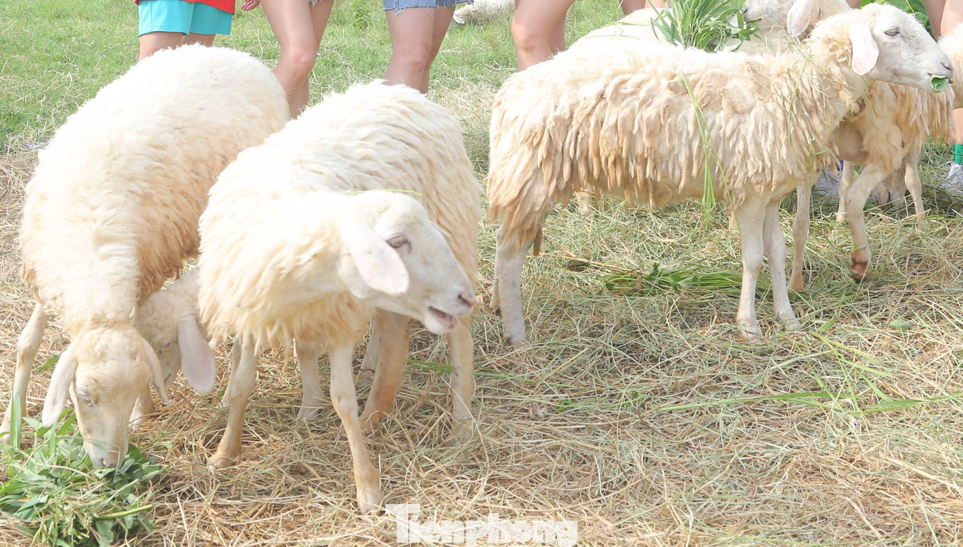 | Không chỉ trẻ con, người lớn cũng hào hứng vui chơi cùng những con cừu. |