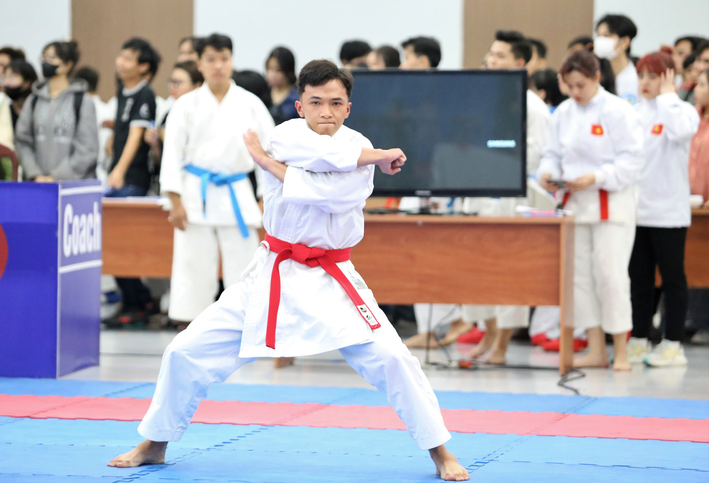| Ngoài giải chạy bộ, các bạn sinh viên cũng tranh tài ở những bộ môn thể chất năng động khác như bóng bàn, thi đấu karate... |