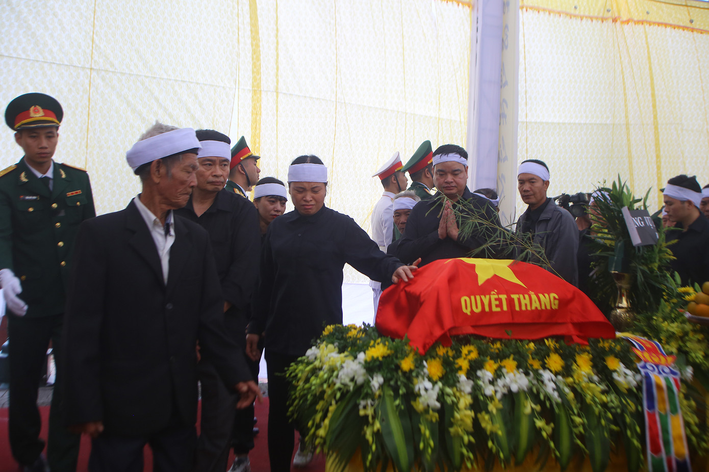 TPO - Tại Lễ viếng Thiếu tướng Nguyễn Hữu Hùng vào sáng nay (19/10/2020) tại nghĩa trang Liệt sĩ xã Sài Sơn, huyện Quốc Oai, TP.Hà Nội, những giọt nước mắt của người thân và đồng đội không ngừng rơi thay cho lời tiễn đưa người con, người chồng, người cha, người đồng đội về với đất mẹ.