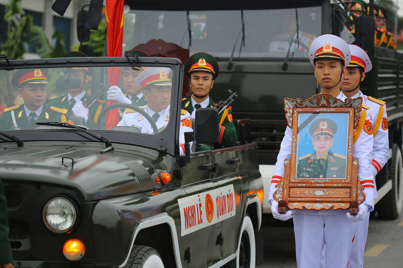 Lúc 11 giờ, Lễ truy điệu Thiếu tướng Nguyễn Hữu Hùng được diễn ra.