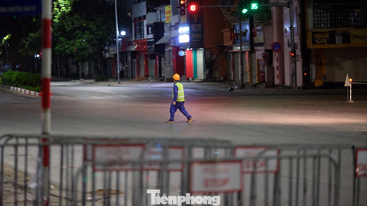 Công tác rào chắn, chăng dây để khóa đường phục vụ thi công được thực hiện tại thời điểm 23 giờ đêm 21/7.
