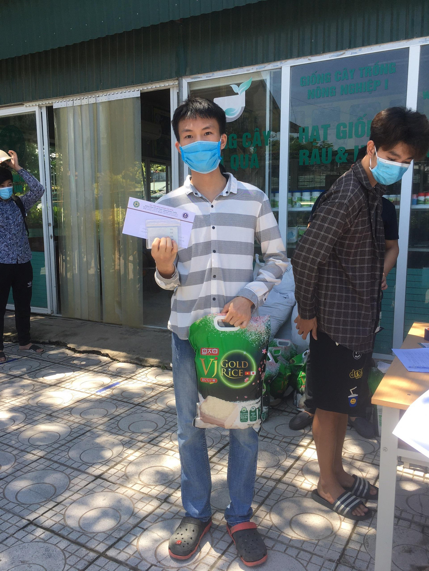 | ThS Nguyễn Thanh Phong, Phó Bí thư Đoàn Thanh niên Học viện, Bí thư Chi bộ Sinh viên Khoa Kinh tế và PTNT trao quà hỗ trợ cho sinh viên đang ở lại Học viện. |