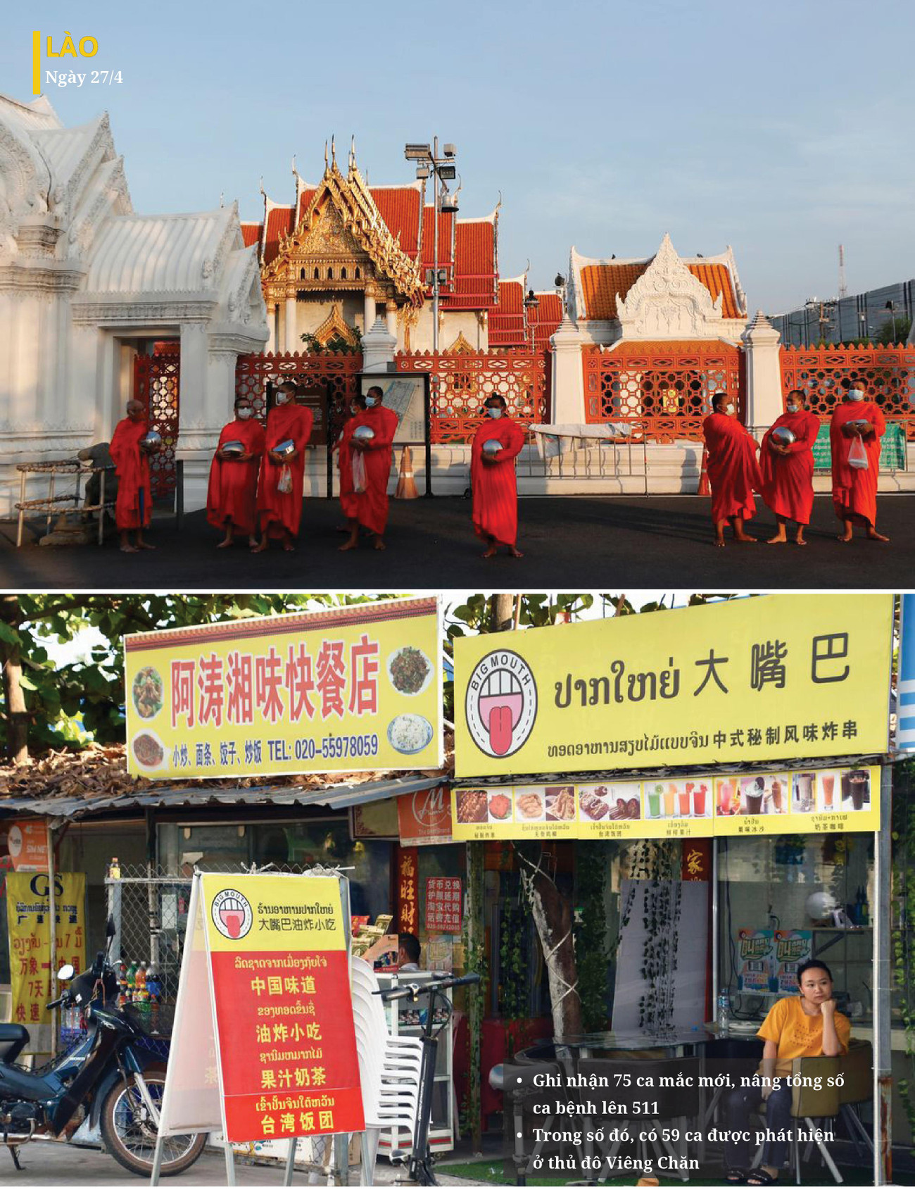 Ngày 27/4, cơ quan y tế Lào báo cáo nước này vừa ghi nhận 75 ca mắc mới COVID-19, nâng tổng số ca bệnh lên 511 ca.