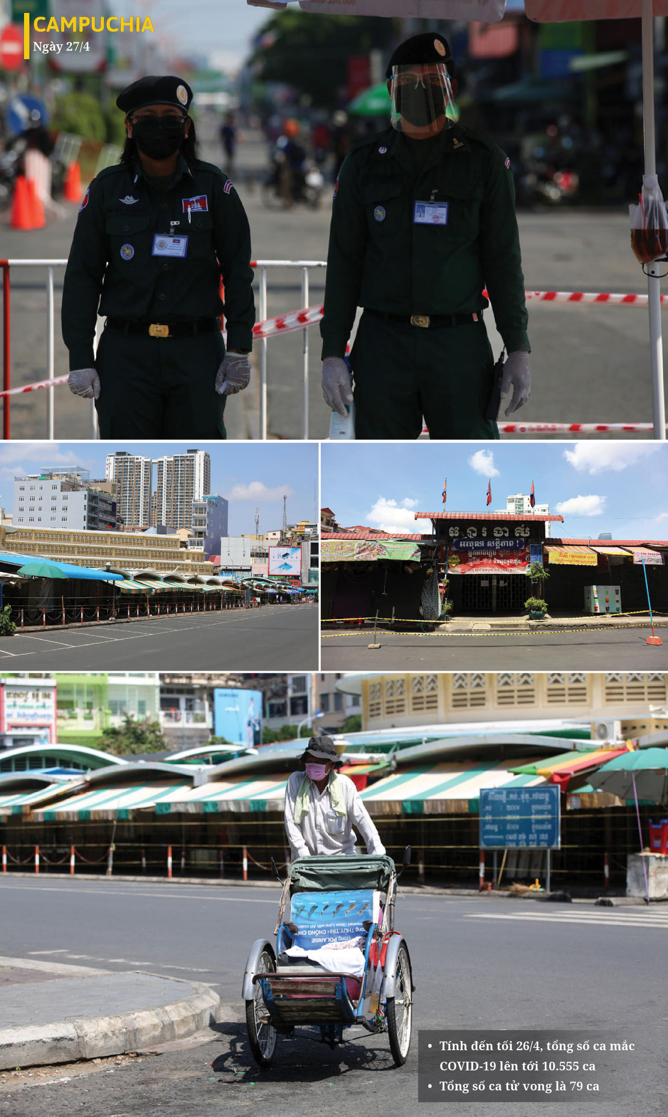 Tính đến tối 26/4, tổng số ca mắc COVID-19 ở Campuchia đã lên tới 10.555 cam trong đó có 10.005 ca liên quan đến ổ dịch cộng đồng ngày 20/2. Tổng số ca tử vong vì COVID-19 là 79 ca.