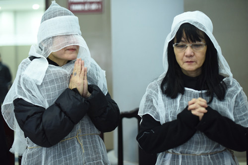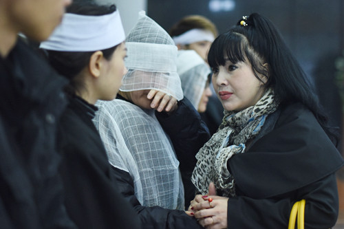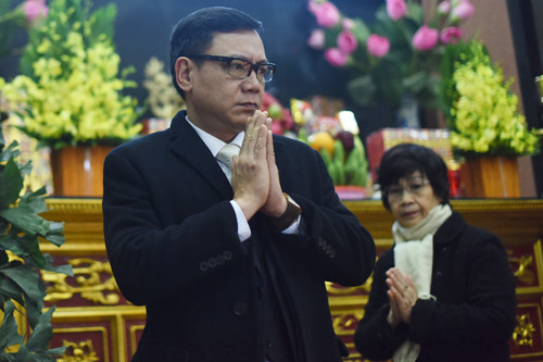 Nhạc sĩ Đỗ Hồng Quân cùng vợ - diễn viên Chiều Xuân - tới viếng NSND Tuệ Minh từ sớm. Chiều Xuân chơi thân với con gái cả của NSND Tuệ Minh. Chị cũng từng được nữ diễn viên giảng dạy trong một số tiết học ở Đại học Sân khấu Điện ảnh.