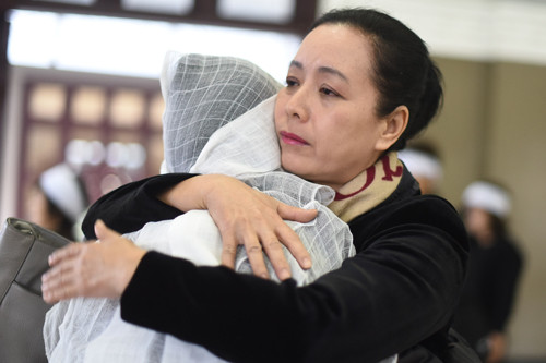 Chiều Xuân ôm con gái cả của NSND Tuệ Minh để an ủi.