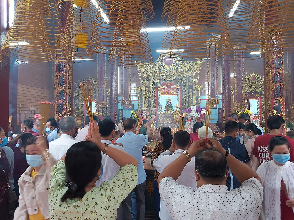 Người dân vào viếng chùa Ông ở bến Ninh Kiều