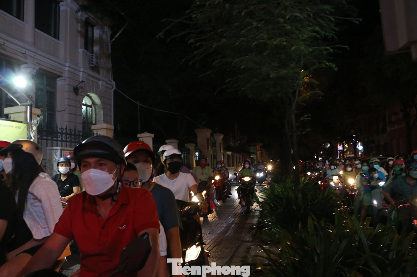 | Các tuyến đường quanh phố đi bộ Nguyễn Huệ và công viên Bến Bạch Đằng ken cứng phương tiện vào tối 10/9. Ảnh: HỮU HUY |