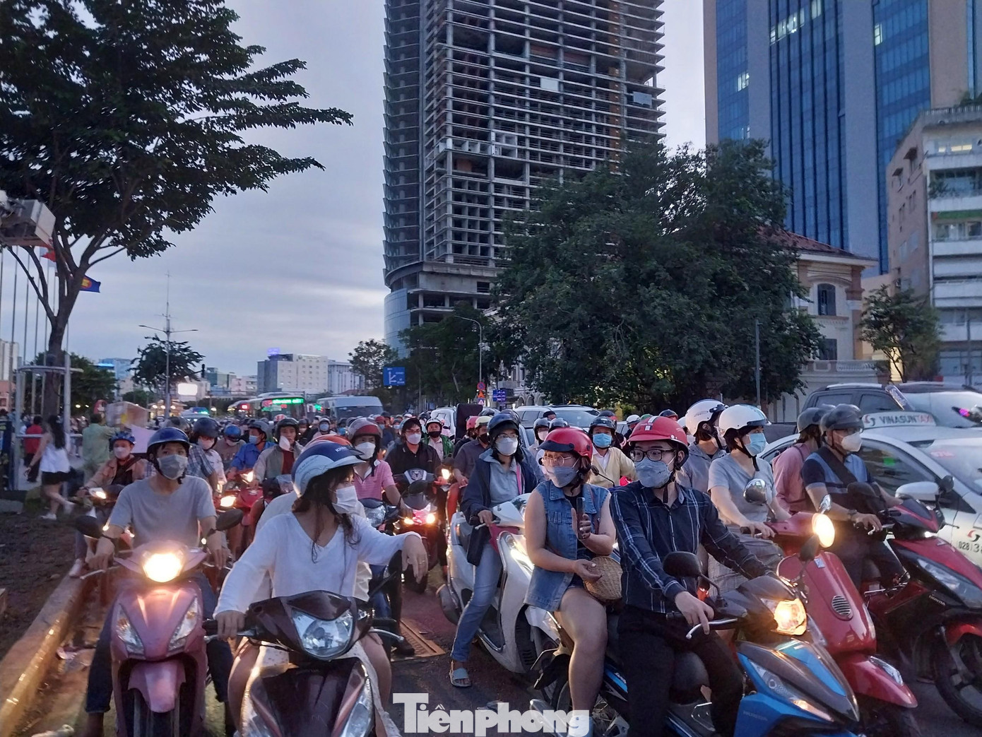 | Phía bên ngoài khu vực tổ chức lễ hội nhiều bãi xe không còn chỗ. Khu vực từ cầu Khánh Hội hướng về Vòng xoay Công trường Mê Linh bị ùn ứ, lực lượng CSGT cùng với lực lượng Thanh niên xung phong phải liên tục điều tiết và hỗ trợ người dân sang đường. |