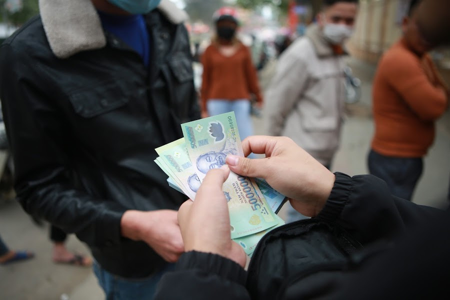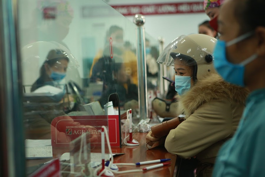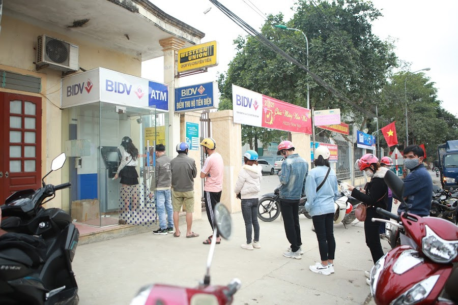Người dân chờ hàng tiếng đồng hồ chờ rút tiền ngày Tết