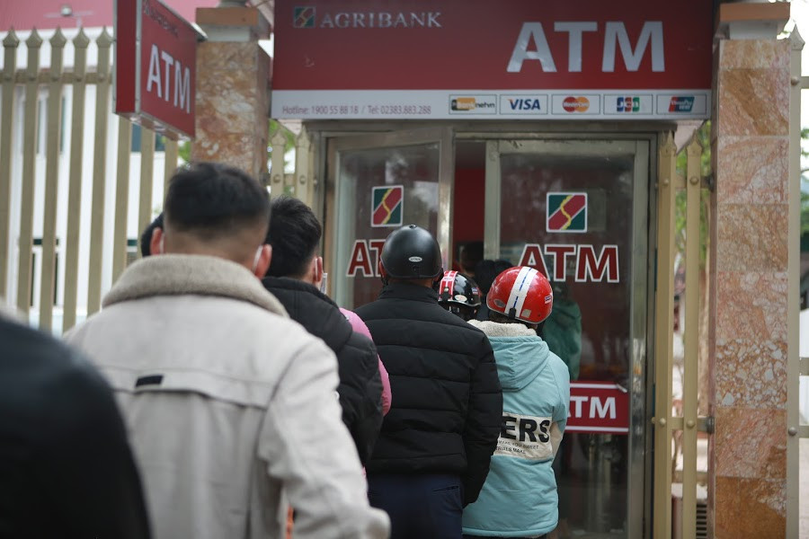 Vì số lượng người rút tiền tăng cao đột biến vào dịp sát Tết khiến các cây ATM luôn trong tình trạng quá tải, thậm chí nhiều cây ATM rơi vào tình trạng… “hết tiền”. Nhiều người lựa chọn vào giao dịch trực tiếp tại các chi nhánh ngân hàng ở địa phương.