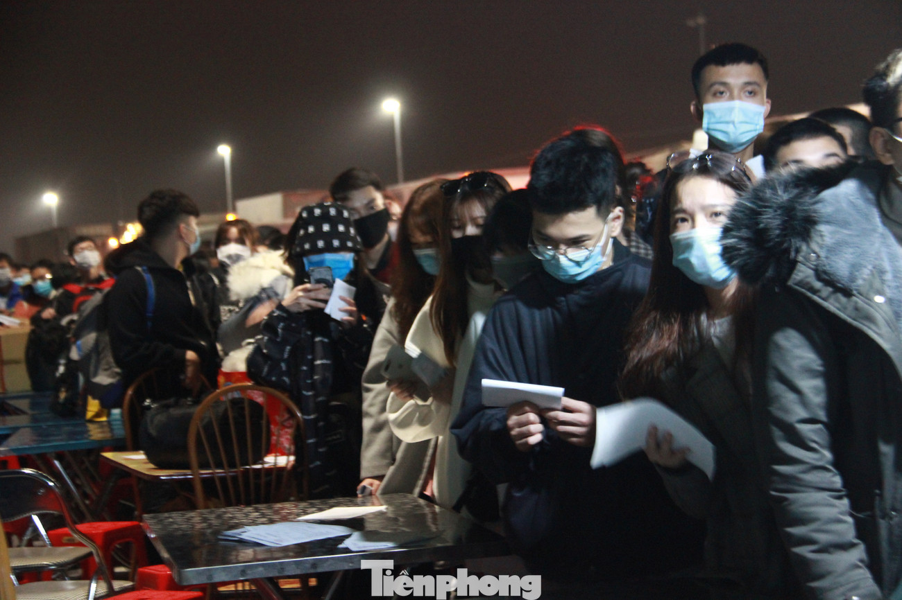 "Em chờ ở đây từ chiều để được đăng ký khai báo y tế, đo thân nhiệt. Lúc đầu em cứ sợ sẽ không được về ăn Tết cùng gia đình. Nhưng khi về đến đây em đã yên tâm là sẽ được về nhà" - em Hoàng Chí Danh, sinh viên đang học ở Hà Nội cho biết