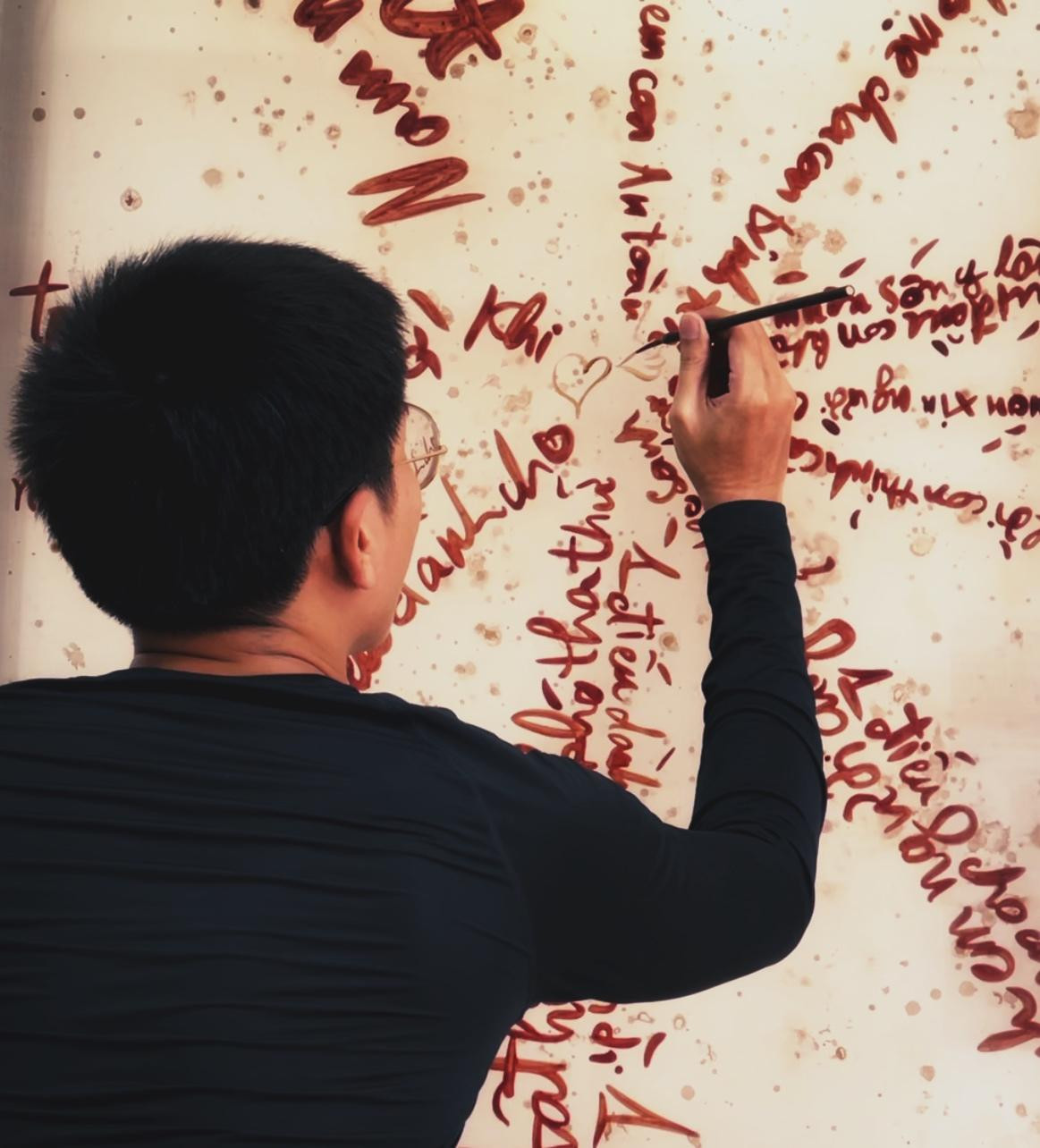 Wowy cho biết thông qua triển lãm này, anh tổ chức đấu giá kín 2 bức tranh gây quỹ. Số tiền nhận được sẽ chuyển đến khoa huyết học Bệnh viện Nhi đồng (TP.HCM) hỗ trợ các bệnh nhi và nhóm 3 đầu 6 tay để giúp người khiếm thính học nghề.