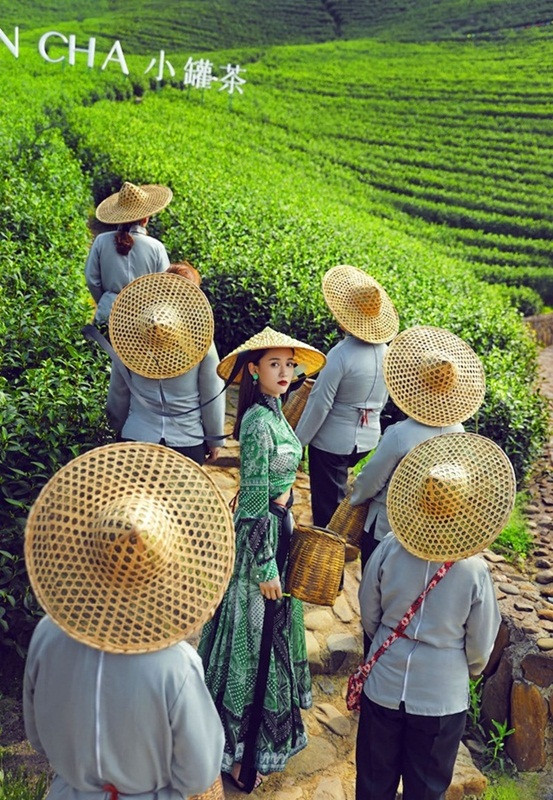 Người đẹp bay bổng giữa khung cảnh đồi chè xanh mướt tuyệt đẹp.