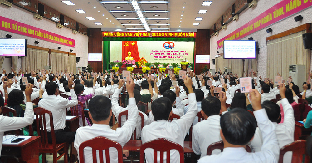 Đại hội đại biểu Đảng bộ tỉnh Đồng Tháp lần thứ XI, nhiệm kỳ 2020 - 2025 diễn ra từ ngày 17 - 20/10 với chủ đề "Xây dựng Đảng, hệ thống chính trị trong sạch, vững mạnh; phát huy sức mạnh đại đoàn kết toàn dân; đưa kinh tế - xã hội phát triển nhanh và bền vững; nâng cao chất lượng sống của nhân dân; xây dựng nền văn hóa và con người Đồng Tháp nghĩa tình, năng động, sáng tạo; bảo đảm vững chắc quốc phòng, an ninh".