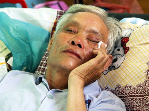 Theo bác sĩ Trần Minh Toàn – trưởng kíp trực cấp cứu, 2 bệnh nhân Vĩnh, Cạng nhập viện hồi 21h40 tối ngày 21/3. Trong đó, bệnh nhân Vĩnh hai mắt bị bỏng kết mạc, giác mạc ở mức độ rất nặng. Bệnh nhân Cạng cũng bị tình trạng tương tự nhưng ở mức độ trung bình, bỏng ở mặt. Sau khi rửa vết thương, cả 2 bệnh nhân này được chuyển lên điều trị tại khoa Mắt của bệnh viện Chợ Rẫy.