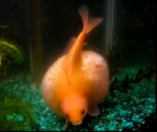 Chú cá vàng này không thể nổi lên trên mặt nước như những con cá khác trong bể vì quá béo.