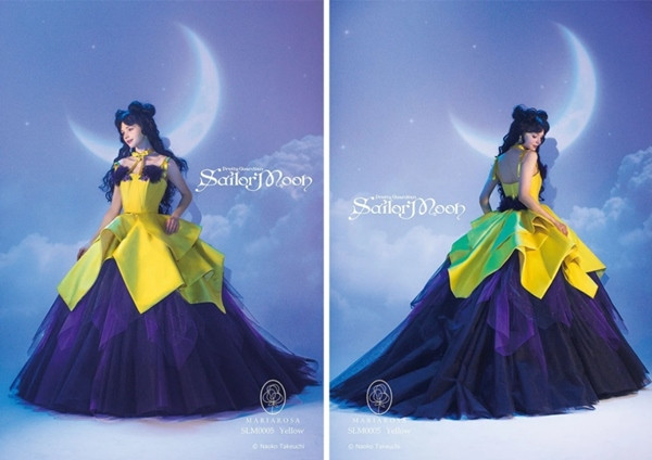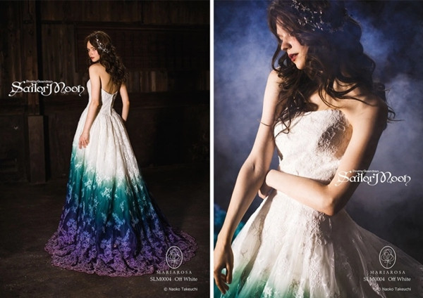 Cũng như trong truyện tranh, “ngôi sao” của dòng váy cưới này là chiếc váy Sailor Moon, với 3 màu đúng như trang phục của nữ chính.