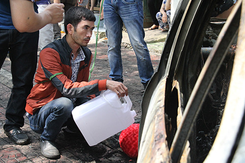Theo điều tra, rạng sáng hôm nay do ghen, Tuấn tẩm xăng vào chăn, đốt cháy rụi ôtô của chị Nguyễn Thanh Nhàn.