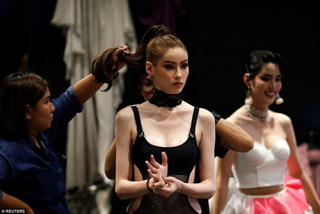 Luyện tập bước đi uyển chuyển xung quanh hậu trường trên những đôi giày cao gót, diện những bộ đồ bikini gợi cảm, mái tóc và gương mặt đã được chuẩn bị hoàn hảo, những cô gái xinh đẹp, duyên dáng này là những thí sinh của cuộc thi hoa hậu chuyển giới lớn nhất thế giới - Miss Tiffany’s Universe được tổ chức thường niên tại Thái Lan.