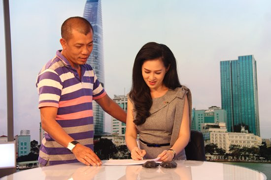 Và đây là hình ảnh chỉn chu của BTV Thuý Hằng khi đã sẵn sàng lên sóng.