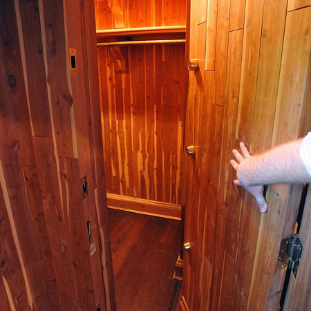 Cánh cửa dẫn tới phòng bí mật trong căn nhà được làm bằng gỗ cao cấp