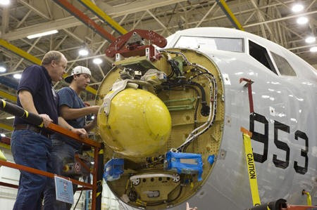 Phần thân một chiếc P-8A Poseidon. Những chiếc máy bay này dài 39,47 m, sải cánh 37,64 m với tải trọng cất cánh tối đa đạt 86.000 kg.