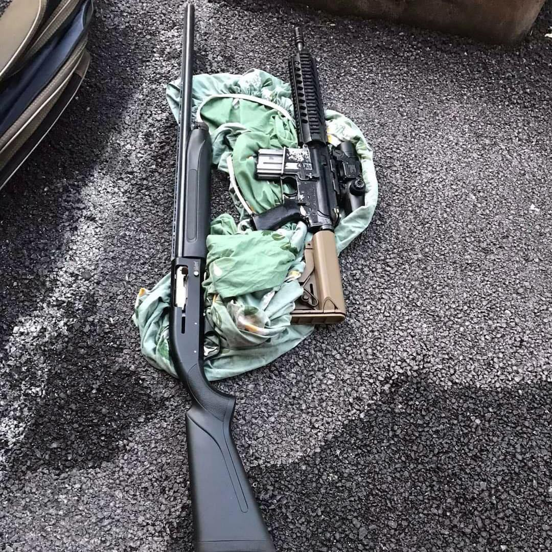 Khám xét khẩn cấp nơi ở của các đối tượng, cảnh sát thu giữ 2 khẩu súng và một số hộp đạn.