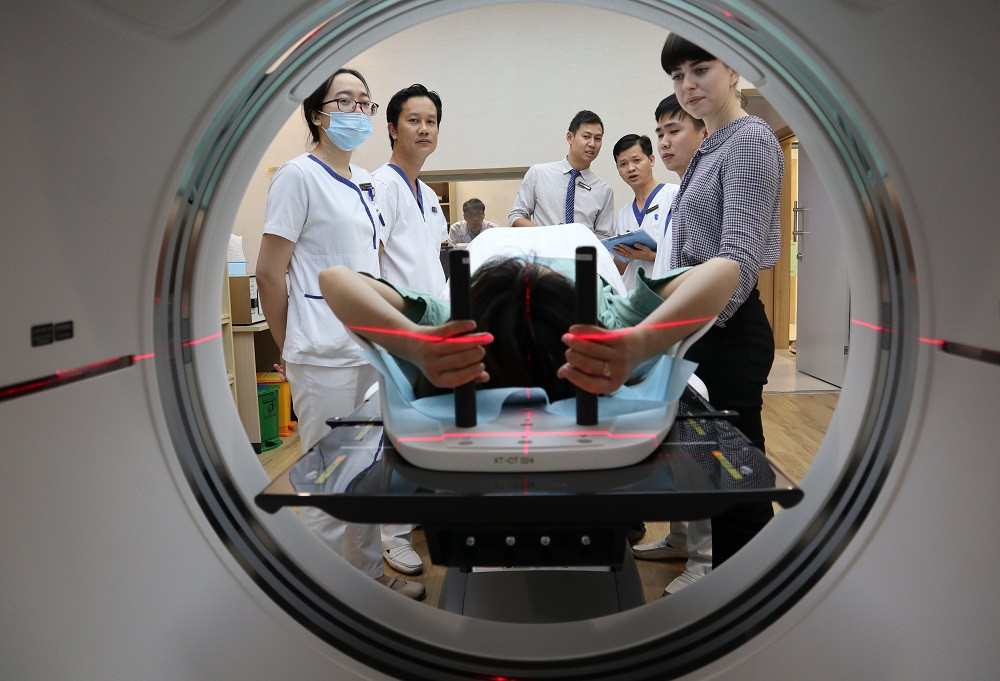 Bác sĩ Francis Chin Kuok Choon, chuyên gia của ICON đang có mặt tại Vinmec Central Park để đào tạo, chuyển giao công nghệ cho đội ngũ y bác sĩ tại đây. Trong quá trình điều trị, một ekip gồm bác sĩ xạ trị, kỹ sư vật lý y khoa và kỹ thuật viên sẽ sử dụng các công nghệ hình ảnh tích hợp trong máy xạ trị để đưa ra phương án chính xác với sai số cho phép chỉ dưới <1mm.
