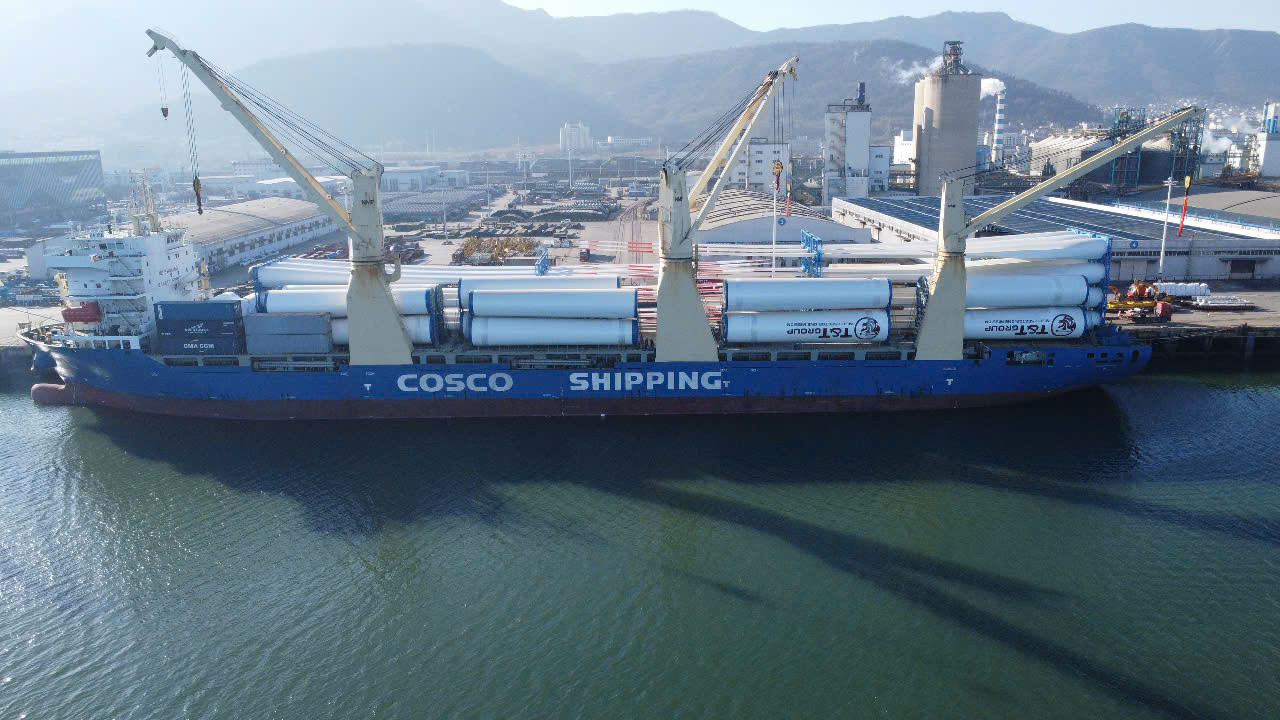 | Ngày 28/12/2024, lô hàng tuabin gió đầu tiên đã xuất cảng để vận chuyển đến cảng Hòn La (tỉnh Quảng Bình, Việt Nam). (Ảnh: T&T Group) |
