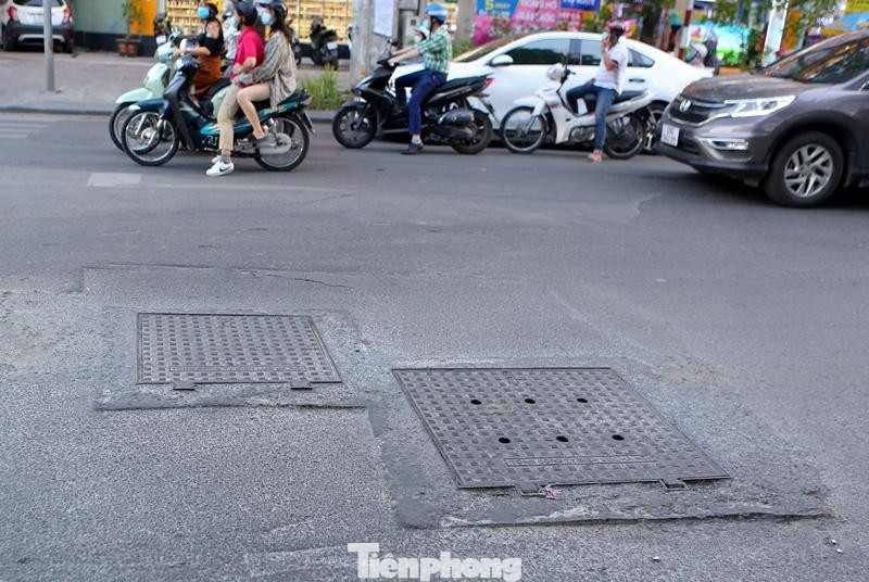| Trên các tuyến phố kết nối với phố Thái Hà như Láng Hạ, Yên Lãng... tình trạng mặt đường bị đào xới, sau đó thảm lại gồ ghề cũng xảy ra. |