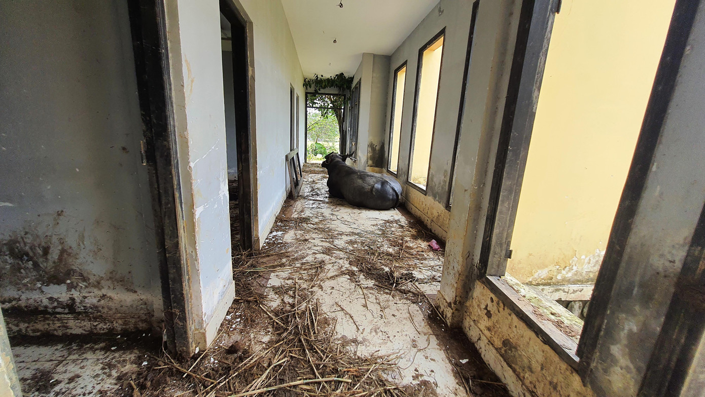 Do bỏ hoang nhiều năm, khu nhà điều hành cao tầng bị xuống cấp, hệ thống cửa đã hỏng, các tấm chắn bằng kính bị vỡ toang hoác. Nếu không được dân địa phương thông tin trước, nhiều người nhầm nơi đây là khu chăn nuôi gia súc “hạng sang”.