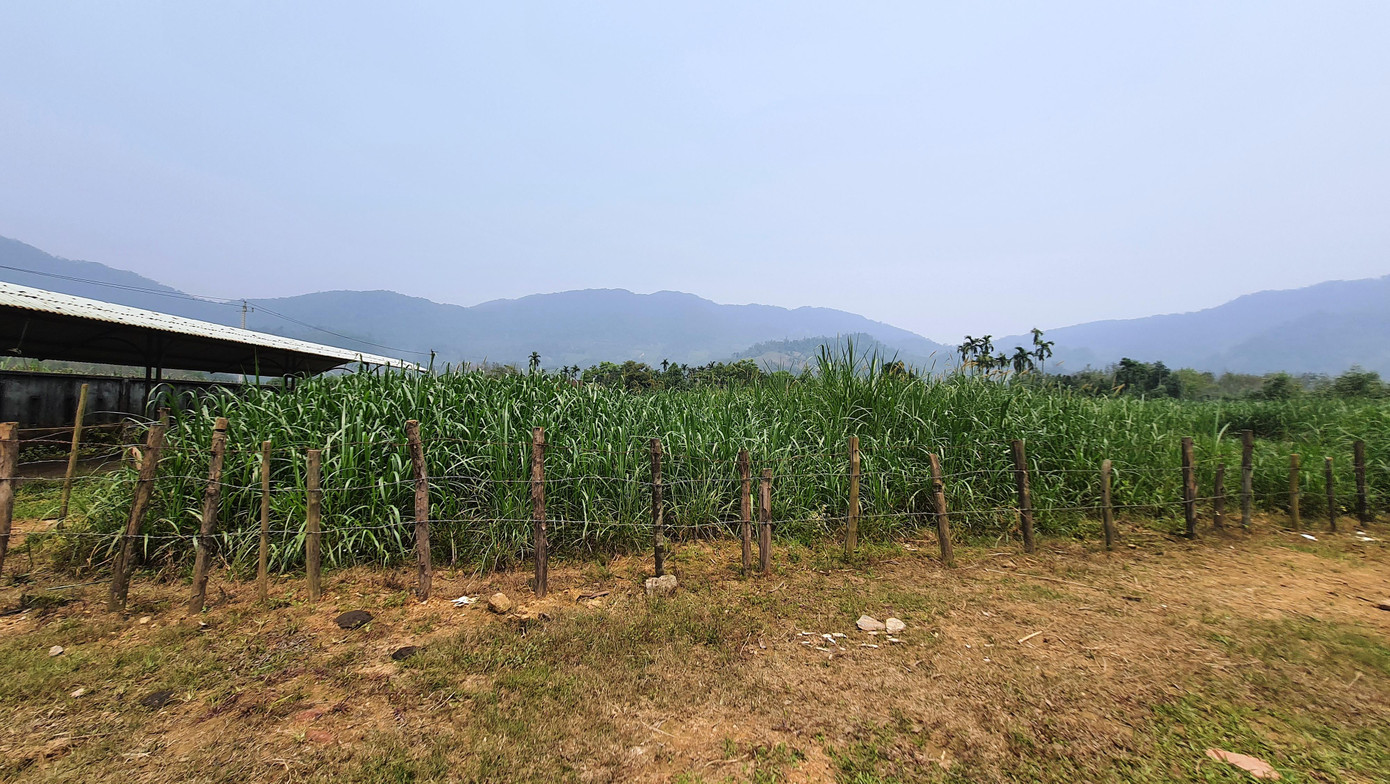 | Người dân tận dụng khuôn viên khu nhà điều hành để trồng cỏ phục vụ chăn nuôi gia súc |