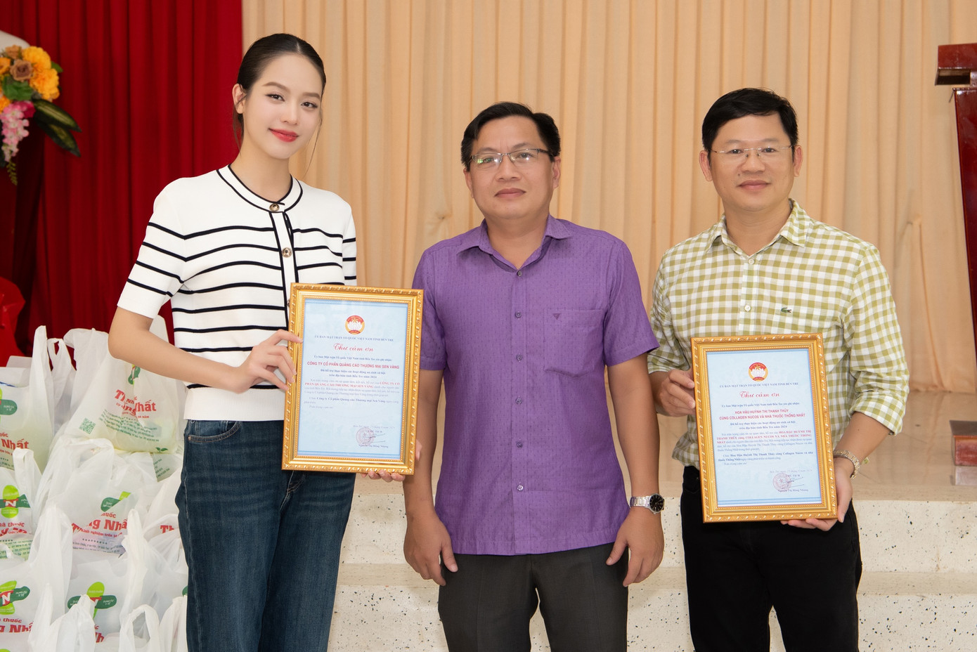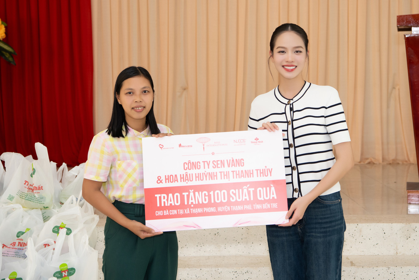 Bên cạnh đó, Thanh Thủy trao tặng 100 phần quà nhu yếu phẩm và tổ chức khám bệnh, phát thực phẩm chức năng miễn phí. Đây cũng là dự án mà Thanh Thủy mang đến cuộc thi Miss International 2024, được tổ chức vào tháng 11.