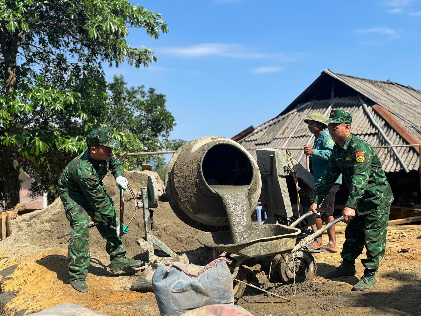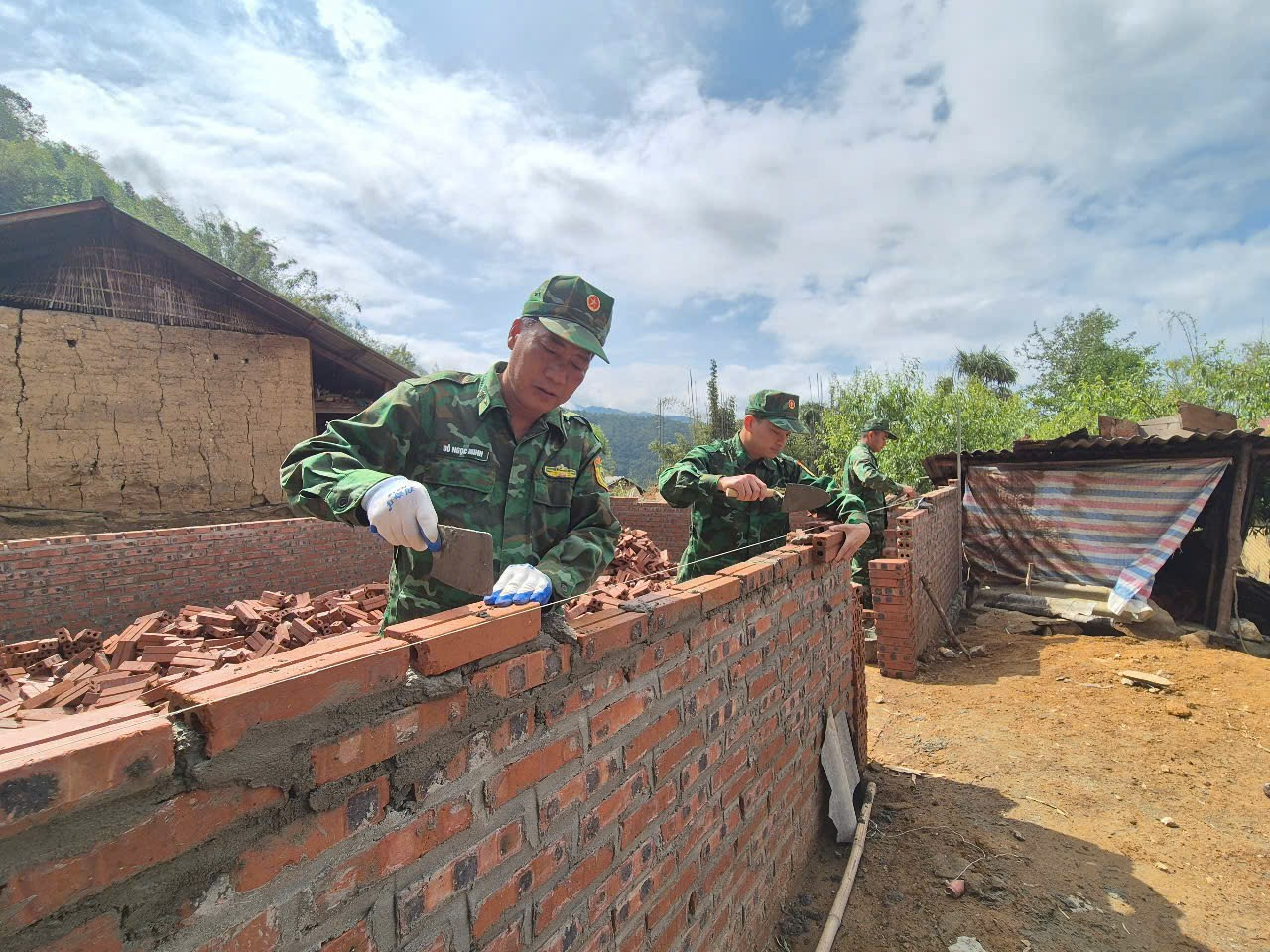 Ngoài ra, hàng trăm lượt cán bộ, chiến sĩ đã trực tiếp xuống địa bàn thực hiện “3 bám, 4 cùng” với nhân dân để xây dựng, sửa chữa hàng trăm căn nhà cho các hộ nghèo, đồng bào dân tộc thiểu số nơi biên cương Tổ quốc. Toàn bộ cán bộ, chiến sỹ đều thực hiện với tinh thần quyết tâm xoá những căn nhà tạm, nhà dột nát ở khu vực biên giới để người dân “an cư, lạc nghiệp”.
